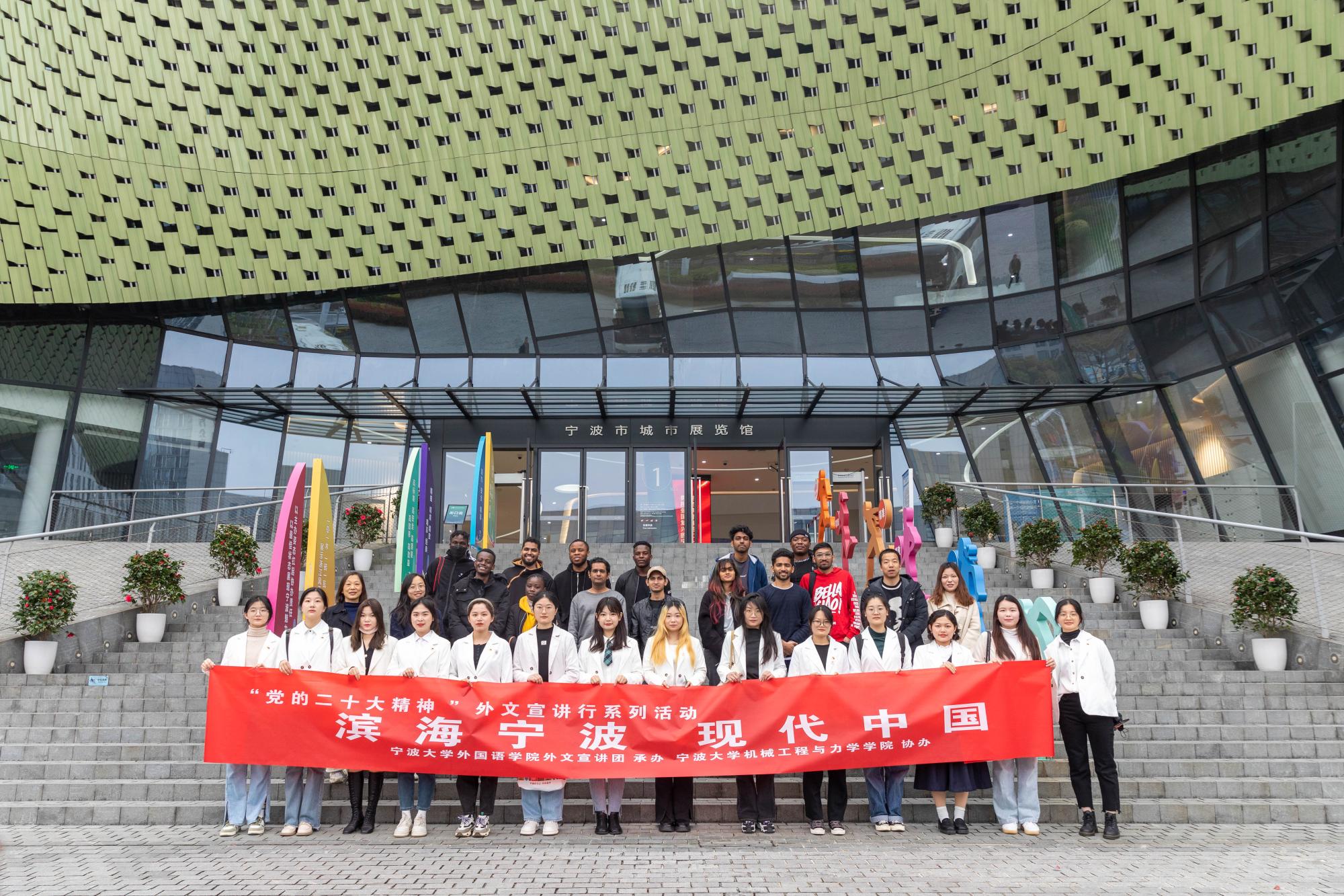 外文宣讲团迎来了一批特别的听众,他们是来自印度、巴基斯坦、津巴布韦等国的在甬留学生。3月23日下午,四十余名中外大学生一同走进宁波城市展览馆,沉浸式了解宁波城市发展的过去、现在和未来,深入感悟中国式现代化的理念。