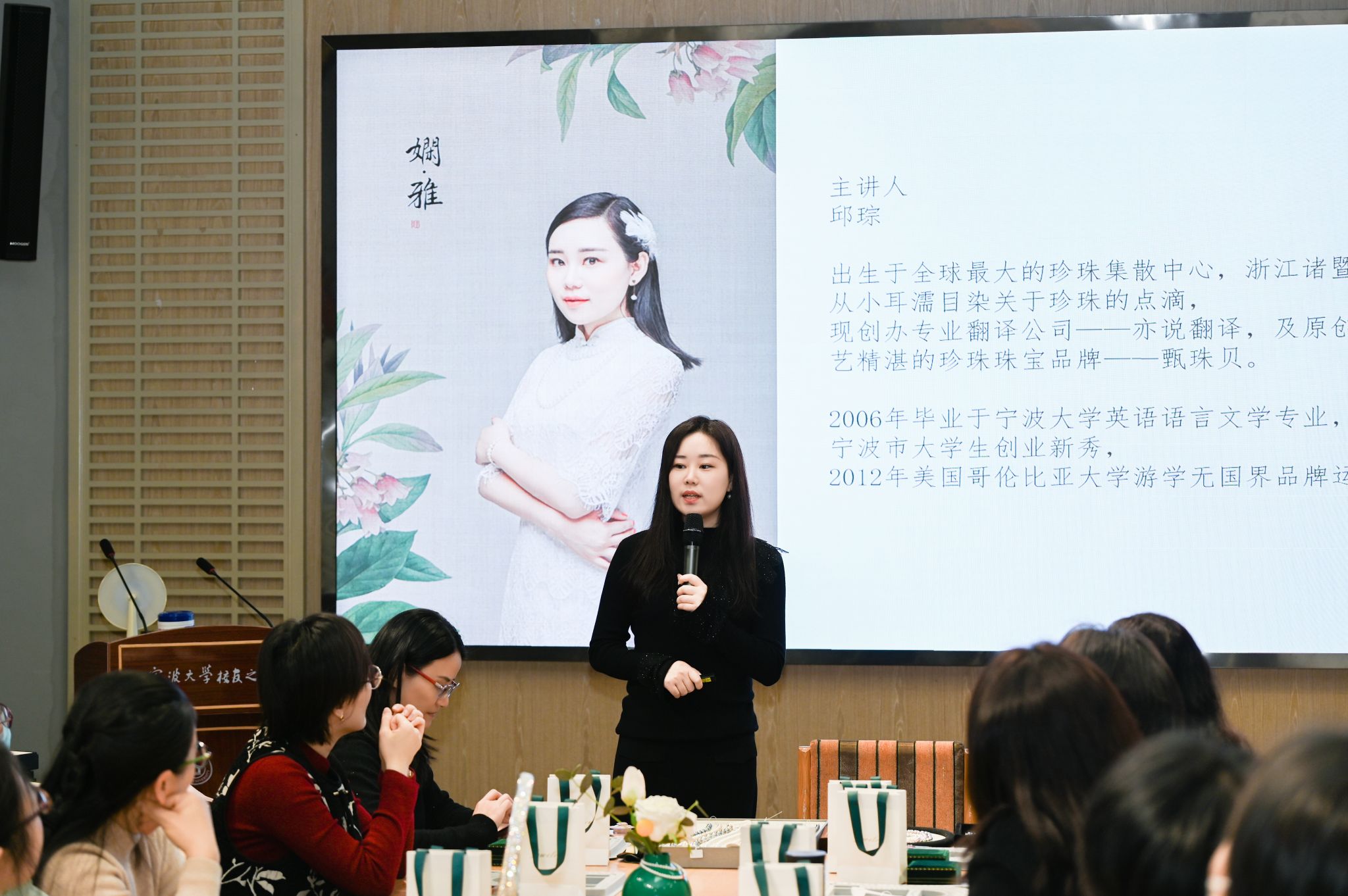 活动伊始,进入约30分钟的 “珍珠小课堂” 环节。邱琮校友凭借专业知识和丰富经验,深入浅出地为老师们讲解珍珠的形成、种类、鉴别方法等。老师们聚精会神地聆听,时不时与邱琮校友互动交流,在轻松的氛围中开启了对珍珠世界的探索之旅。