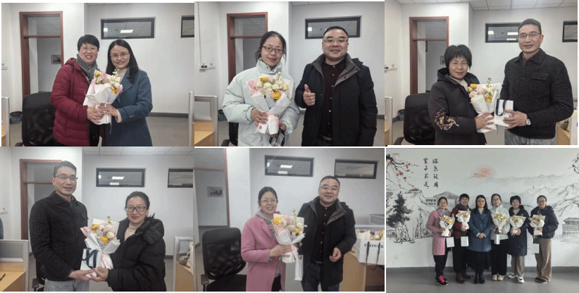 随后,翁书记和李主席向女教师们赠送了精心挑选的鲜花和节日礼物,以表达对她们辛勤工作的感激之情,并与她们一起合影留念。整个慰问活动在一片和谐与欢乐的气氛中圆满结束。