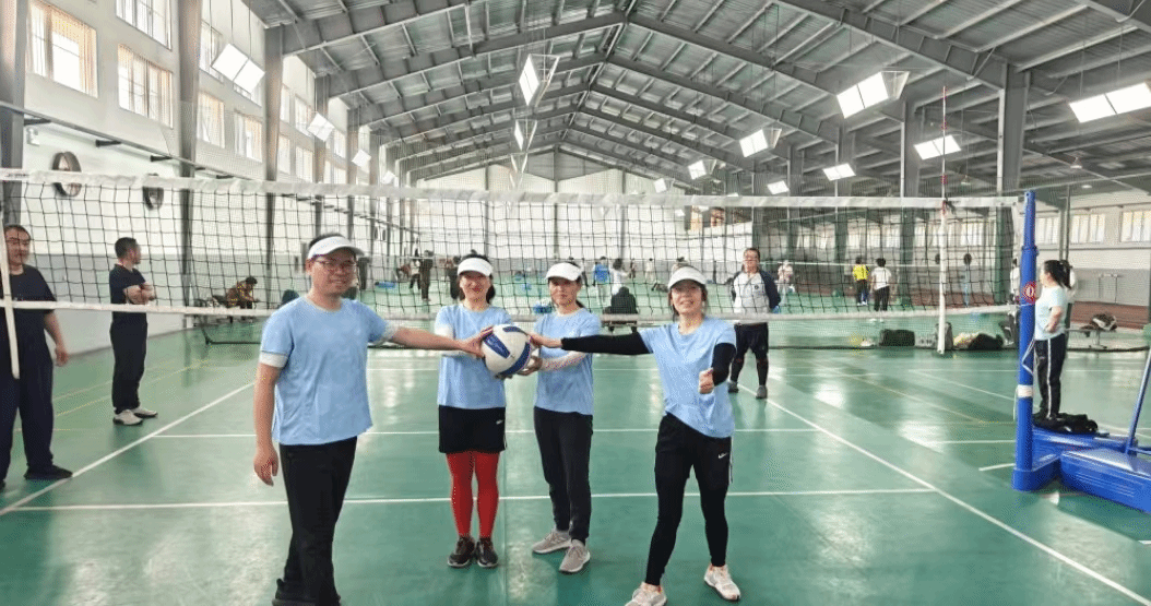 女教职工的活力与风采。气排球运动不仅增强了体质,还促进了同事间的交流与友谊。