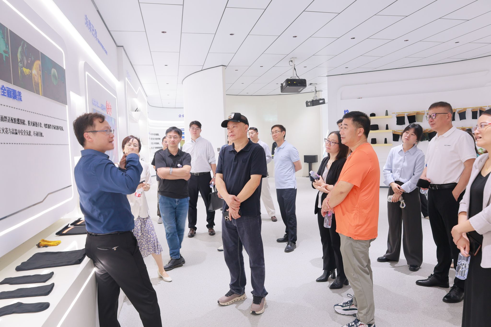 据介绍,晶臻科技长期深耕超高温碳纶不燃材料领域,历经数年技术攻坚,成功研发出可耐 1800℃高温的不燃面料,不仅打破了国外在该领域的技术垄断,更构建起覆盖材料研发、生产、应用的完整自主知识产权体系。目前,公司产品已广泛应用于国防军工、消防应急、建筑安全、船舶制造、化工防护等关键领域,并在浙江余姚建成标准化生产线,凭借过硬的产品品质获得韩国、日本及国内权威机构的高度认可,形成“研发 + 制造 + 营销 + 服务”一体化的成熟运营模式,以颠覆性技术推动行业升级,朝着“打造世界级新材料领军企业”的目标稳步迈进。现场,邢斌还结合实物展示,详细介绍了碳纶材料在消防服、军工防护装备、新能源产业耐高温部件、工业劳动保护等场景的具体应用,让参访人员直观感受到“跨界创新”的力量。