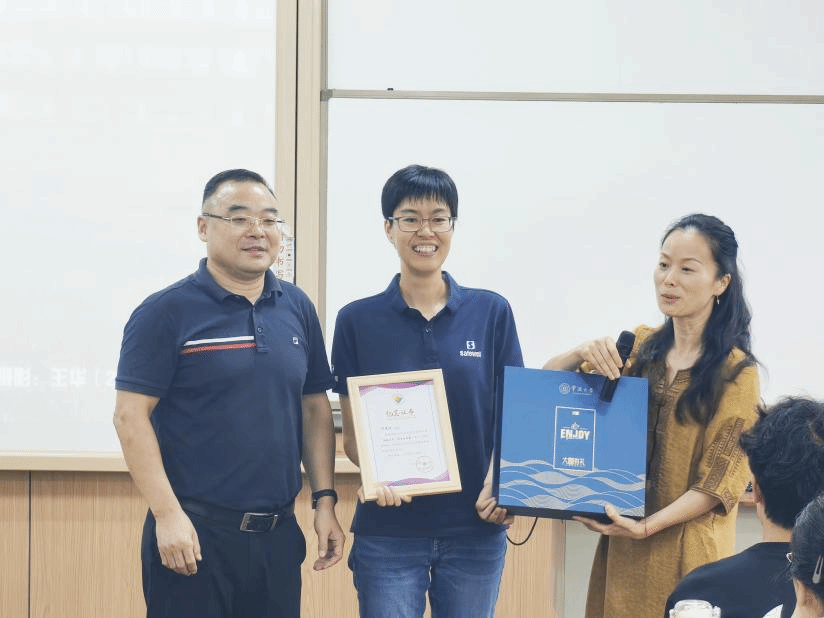 在全场师生的见证下,李昌标老师代表学院为叶凌玲校友颁发礼品与纪念证书,对她在百忙之中重返母校、毫无保留地分享经验表示衷心感谢。她以真挚且富有洞见的职场与人生经验,为同学们带来一堂生动的生涯规划课,既拓宽了大家对职业发展的认知,也传递了不畏试错、勇于探索的坚定力量。