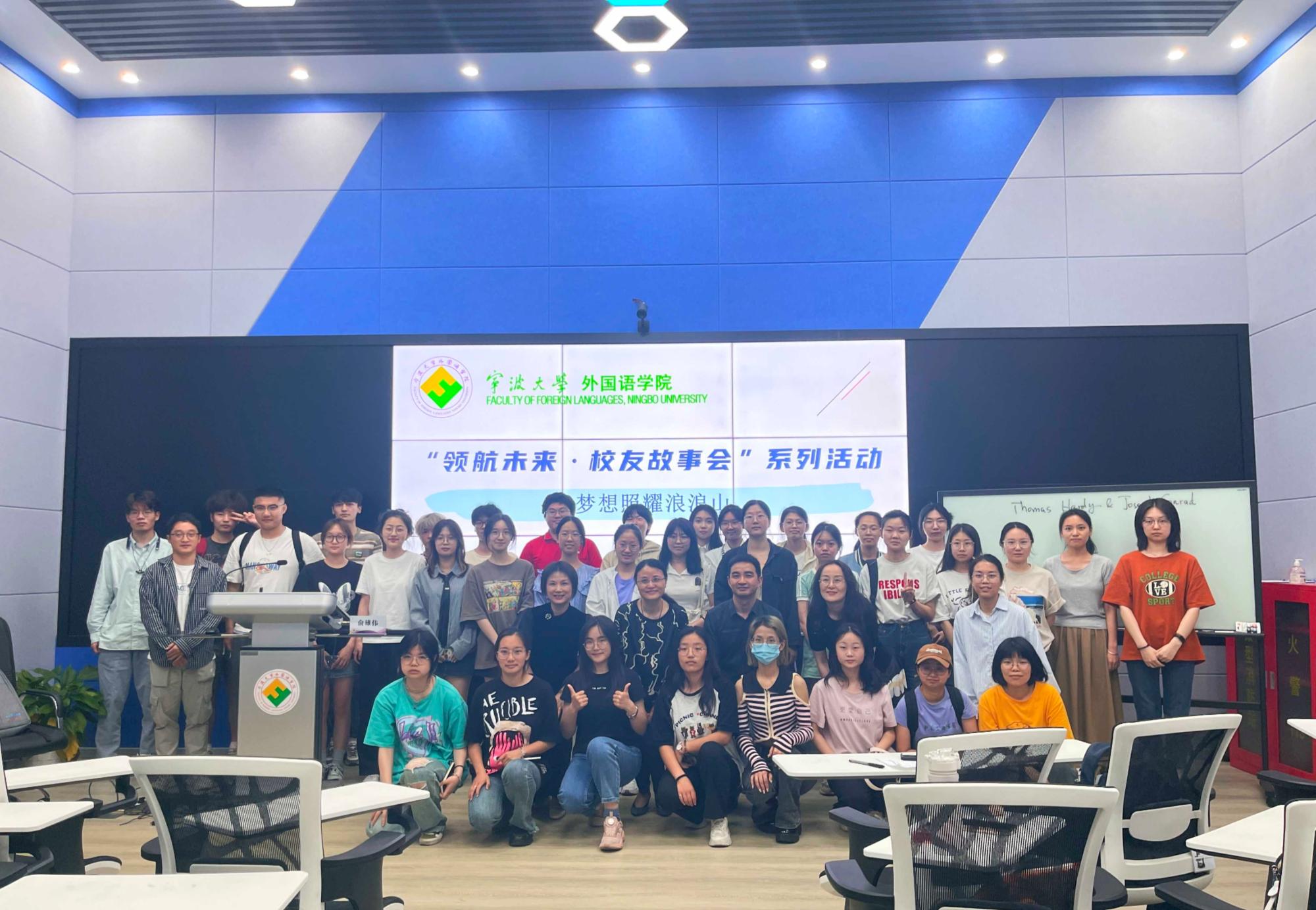 “领航未来·校友故事会”系列活动第三期——“梦想照耀浪浪山”在李达三外语楼210精彩开讲。学院党委书记翁华星、党委副书记胡佳、2022级英语(师范)班主任梁虹和40余名本硕学生参加本次活动。宁波格立光电科技有限公司创始人和总经理、宁波盛和塾理事、爱下电子书
