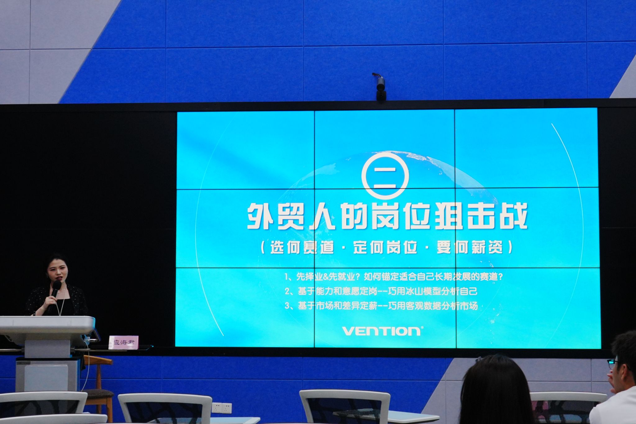 应海君通过全球人才报告、宁波经济数据、行业案例等详细解读宁波外贸行业概况,提出新丝路需要“郑和思维”与“品牌灵魂”。同时,她从经营模式、客户画像、竞对群体、对话方式等维度,深入剖析外贸赛道中“代工”和“品牌”的差异,清晰阐述从业者在传统外贸和品牌外贸中实现价值感的不同,传递出外贸事业是兼具使命、意义与利益的理念,拓宽了学生对可能就业领域的认知,为语言专业学生指明了在对外贸易领域的发展方向。