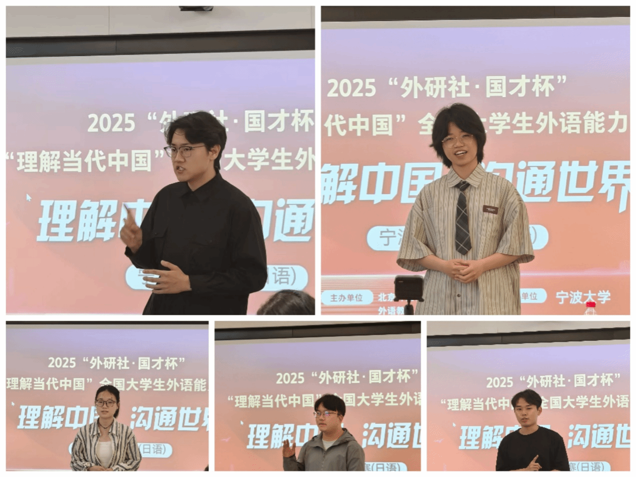 最终,日语系大三学生赵浩宇凭借过硬的专业综合能力夺得校赛金奖,唐佳文、叶亮璇荣获银奖,董火峰、邵莞策、朱方婷获得铜奖。多位参赛同学表示,通过比赛认识到自身差距,积累了宝贵经验,期待来年再创佳绩。
