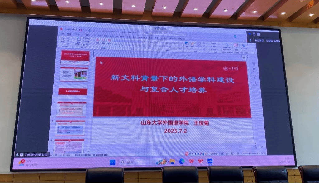近年来在跨学科研究、人才培养模式创新等领域成果斐然。报告中,王俊菊教授立足新文科建设的时代命题,结合自身丰富的理论研究与实践经验,深入探讨外语学科发展与教育改革路径。王俊菊教授着重介绍了山东大学复合型外语专业建设中的新思路与新模式,对爱下电子书