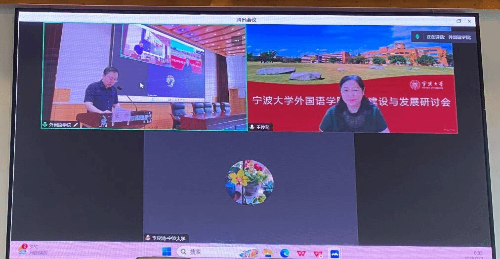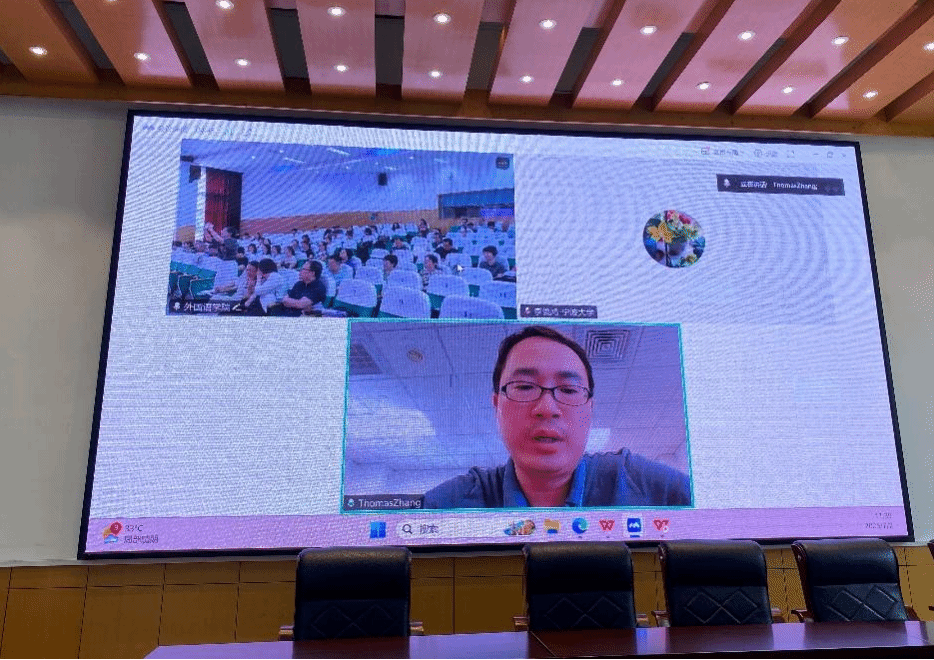 本科教学工作负责人张陟教授主持。会议围绕外语专业面临的挑战、改革路径及产教融合等议题展开探讨。教务处领导、校内外专家、企业代表及全体教师参会,共同为外语专业高质量发展建言献策。