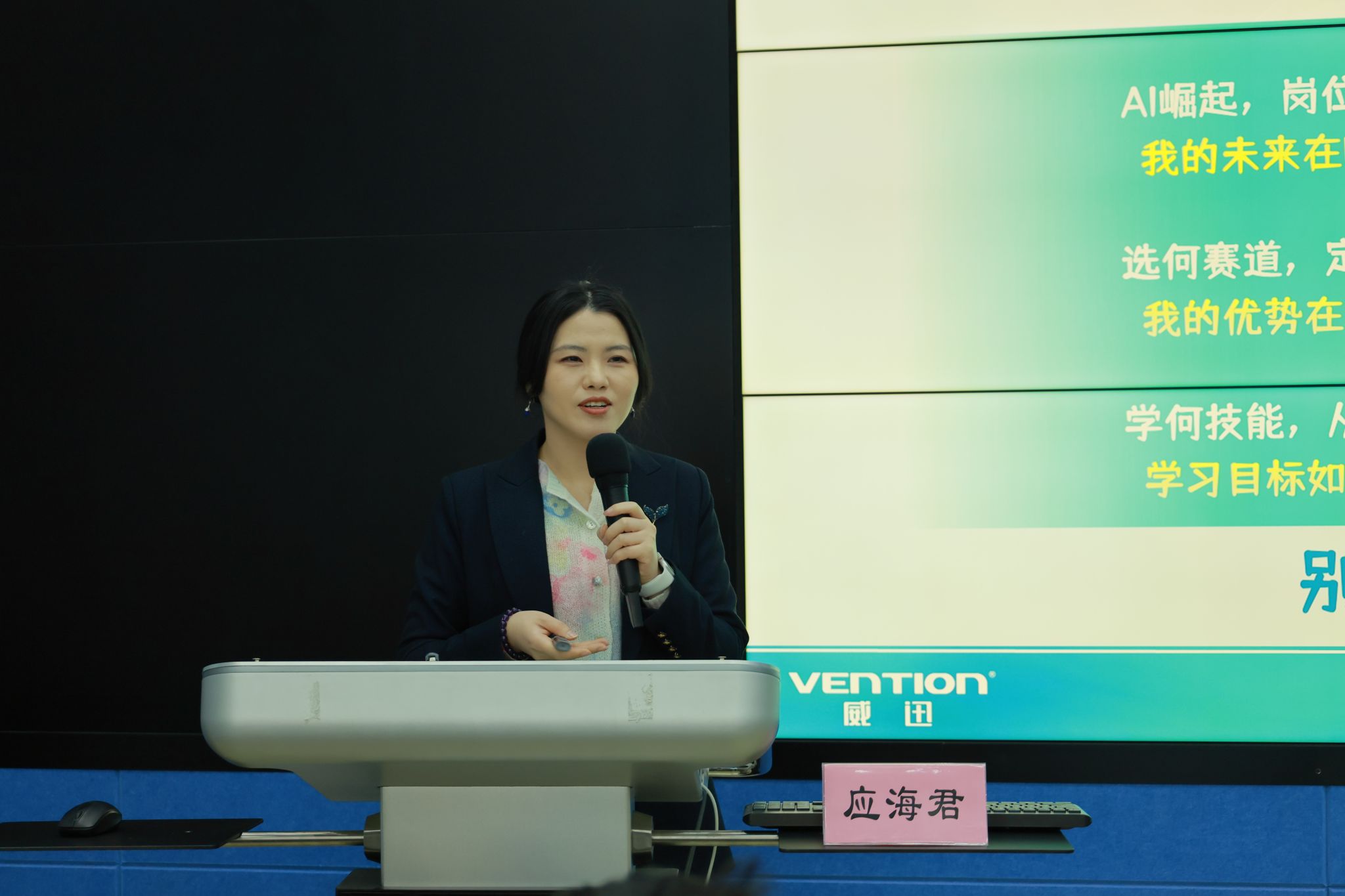 随后,国家一级人力资源管理师应海君经理开展《简历制作与面试闯关实战指南》专题讲座。应海君身兼多所高校特聘专家与客座讲师,拥有《金牌面试官》等系列金牌就业辅导课程,具备丰富的就业指导经验。