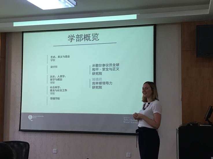 的基本情况。Anya O’Connor女士介绍了英国女王大学的历程和学科情况。David Johnston教授表示很高兴可以就两校的合作进行深入交流。双方围绕合作培养本科生和研究生交换项目展开讨论,并达成了初步共识。英国女王大学为英国顶尖名校,历史悠久,底蕴深厚,是一所享誉欧洲的公立顶级研究型大学。