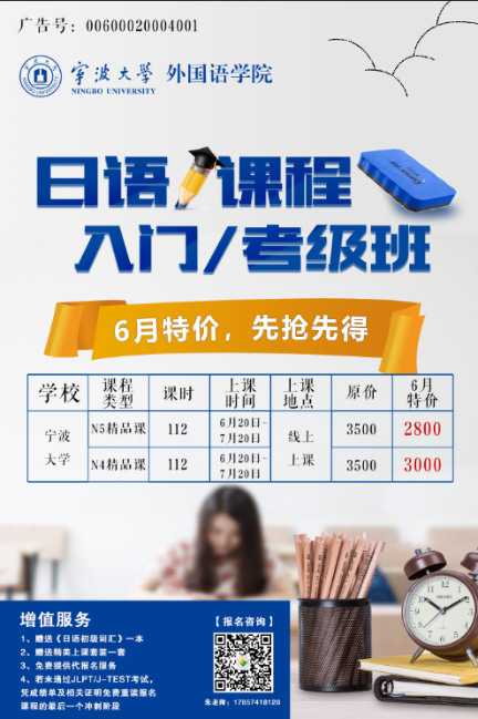 活动详情:2800元-日语等级N5,3000元-日语等级N4,疫情期间线上授课