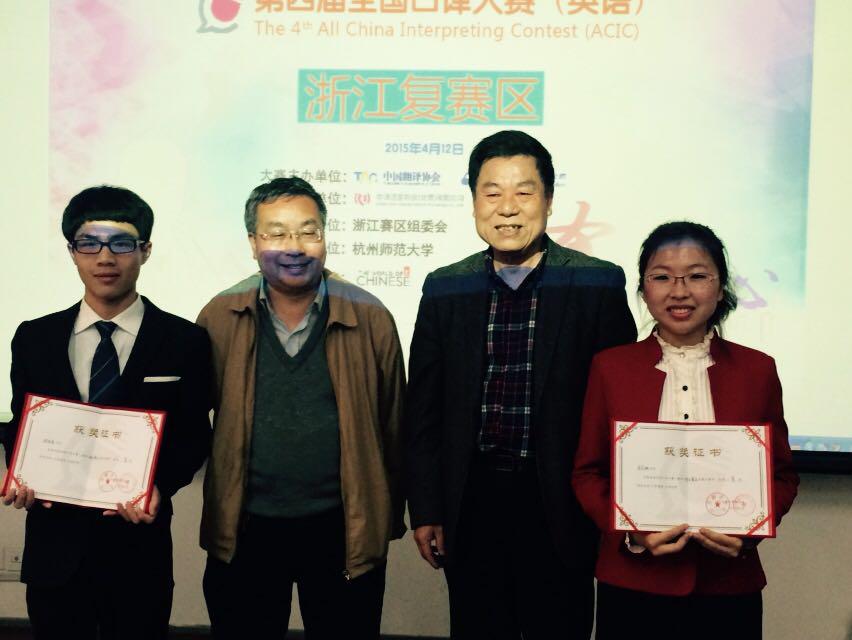 第四届中译杯全国口译大赛浙江省复赛4月12日在杭州师范大学仓前校区举行。来自浙江省各大高校和高职院校94名选手同台竞技,展开激烈竞争,爱下电子书 沈佳伟同学表现突出,力挫群雄,获得冠军。沈同学将代表浙江省参加该项赛事的华东区赛。另外爱下电子书 钱玲丽同学获得三等奖。
