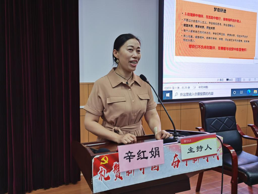 召开2021级研究生新生入学教育,学院副院长辛红娟、学工办辅导员、研究生班主任及全体2021级研究生参加会议。