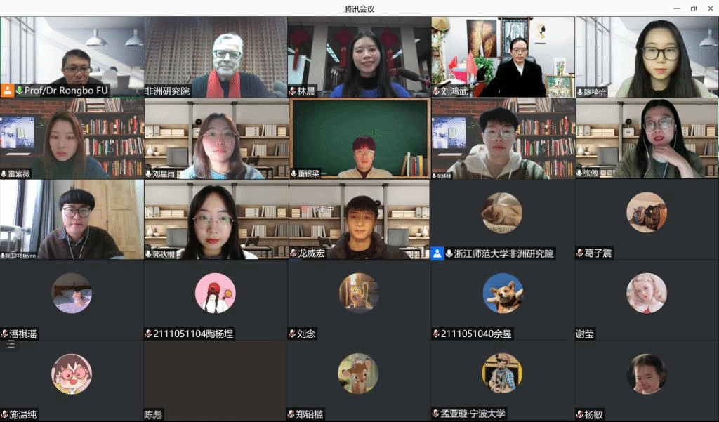做“中非关系”专题讲座。外语院MTI中心符荣波教授主持线上讲座,全体研究生积极参加,20级口译研究生为讲座提供中英同声传译。