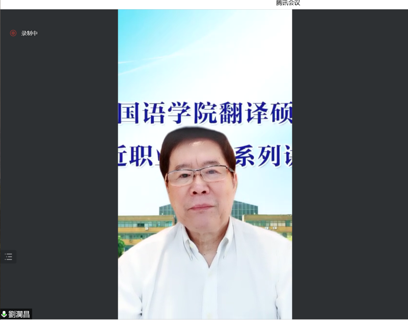 ,主讲“走近职业翻译”系列讲座第四讲,从公共事务及智库专家视角分享后疫情时代的中美关系以及外语(翻译)人员的角色与职业发展。学院翻译硕士研究生及高年级本科生近150人在云端参加了此次讲座。