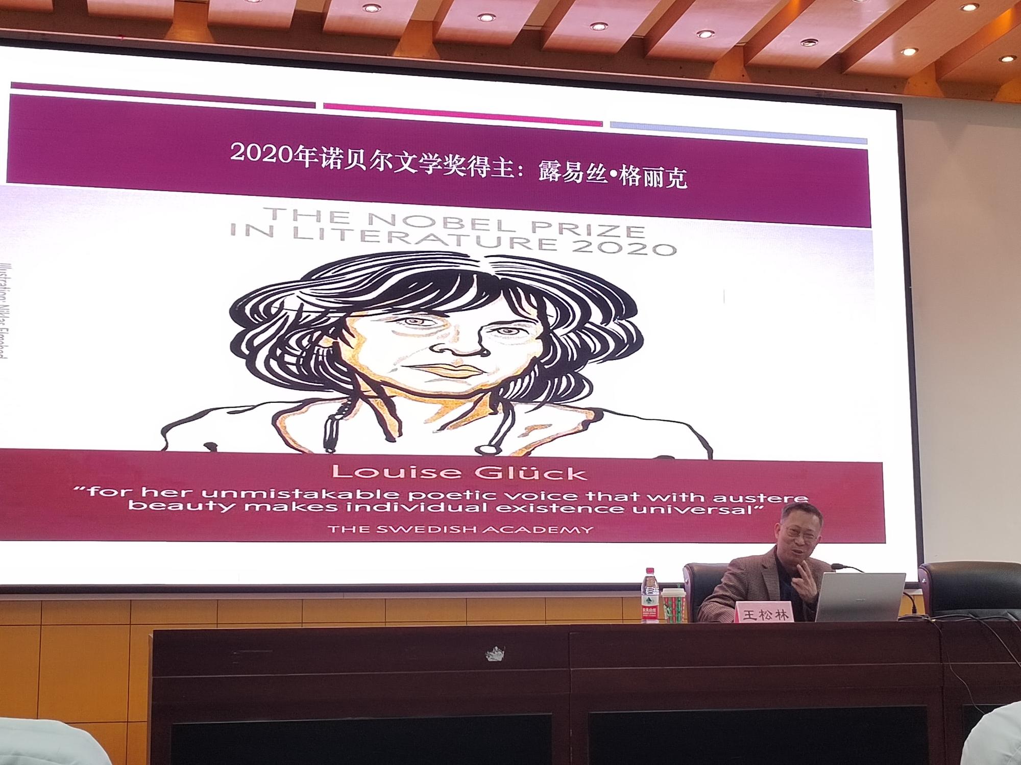 王松林教授以诺贝尔文学奖为切入点,指出诗的重要性在于其蕴含的普遍性。在谈及诗的智慧和治愈功能时,王松林教授先是讨论英文的“wit”词根,后拆解中文的“智慧”二字,给予了同学很大的启发。他认为诗的治愈功能在东西方诗歌中都能得到体现,读诗的过程就是心灵治愈的过程。讲座的第三部分是诗的不可言说性。王松林教授表示,好诗总是设法表达“言外之意”,这与哲学中的“语言不能准确表达思想”相类似。诗是哲学的近邻,诗的最高境界是哲学,哲学的最美表达形式是诗歌。最后,王松林教授期望同学们可以“去感受,去发现,去创造”,由此及彼,举一反三。
