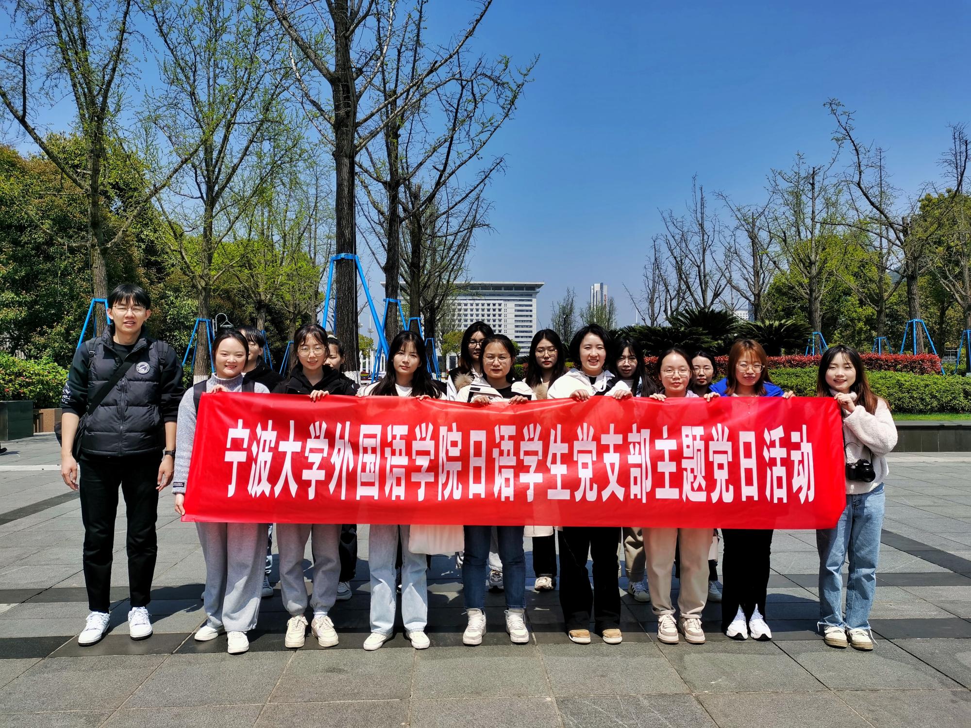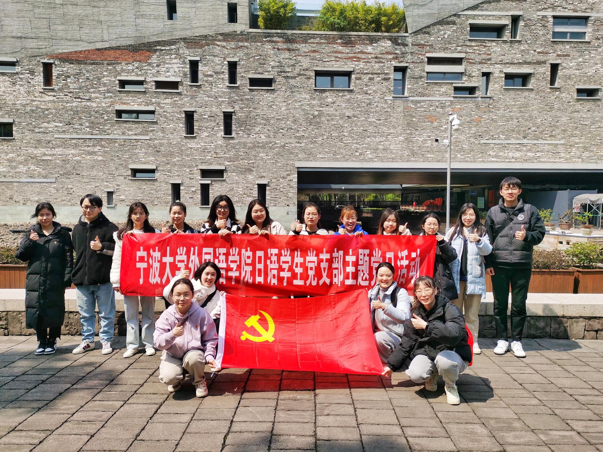 日语学生党支部开展“乐学甬城文化,徒步毅行踏春”主题党日活动。党支部师生党员、入党积极分子共17人参加。