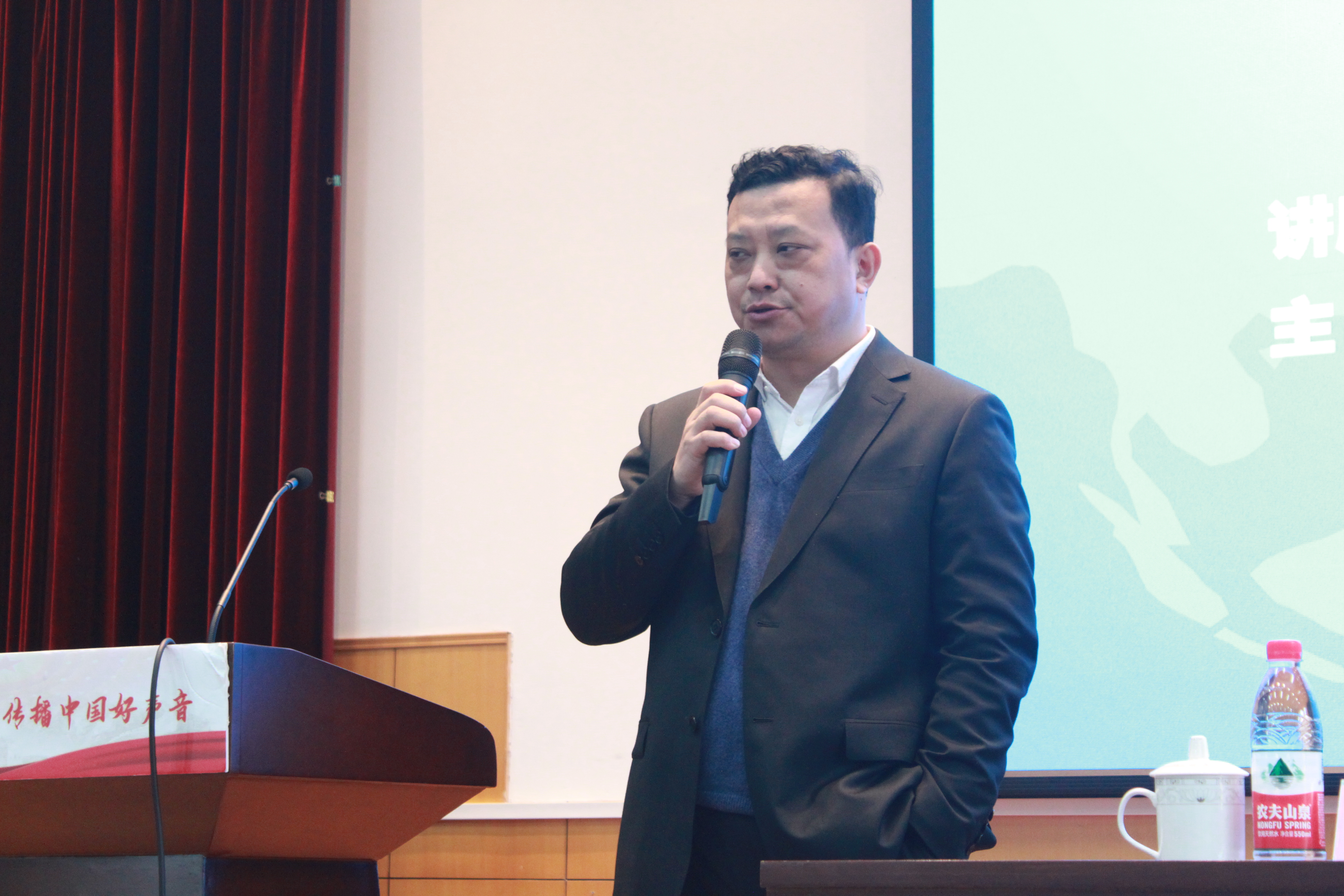 会后,黄玉龙院长作“新时代中国国际传播实战”专题讲座。讲座中,黄玉龙院长结合自己多年来涉外工作经历和传媒工作的实战经验,阐释了我国在不同发展阶段的国际传播策略。他将新时代中国国际传播分成“静态”和“动态”两大类,并指出,在新时代要坚持对外新闻传播中“内容和渠道双为王”,遵循“小切口、大主题、正能量”原则,以更为国际社会喜闻乐见的形式让中国故事“走出去”。充分利用主流外媒的力量扩大传播范围,提升传播实效,实现精准传播,向世界展现可信、可爱、可敬的中国形象。同时,黄玉龙院长结合语言学习的特点,提出了更为扎实全面的翻译人才成长路径。对于翻译专业的学生,要以“语言为基础、专业为支撑、文化为关键”的理念和广阔的胸襟看待世界,弘扬中国优秀文化,讲好中国故事。他鼓励同学们要树立专业自信,以外语为基础,加强专业和文化学习,做“内晓国情,外晓世界,融通中外”的翻译人才,对外讲好中国共产党的故事,讲好中国故事,为构建人类命运共同体贡献智慧和力量。