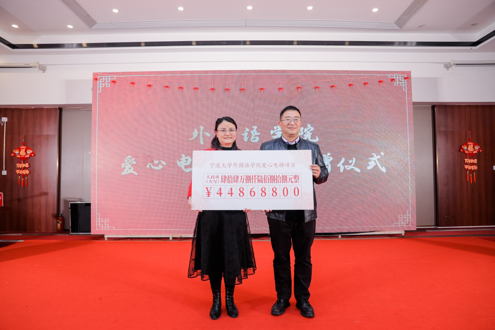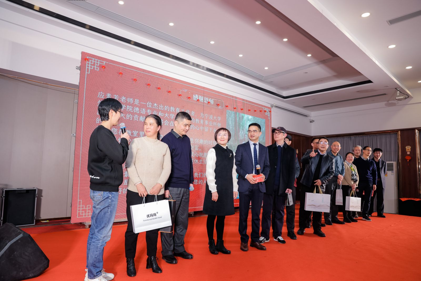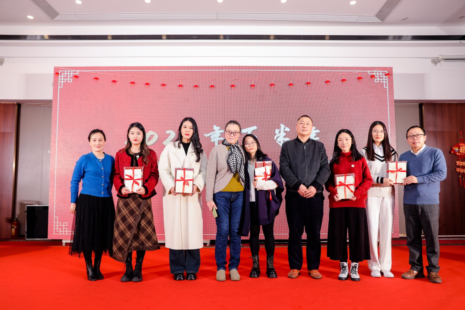联谊会节目精彩纷呈,学院教师、各届校友带来歌舞、乐器弹唱、瑜伽表演等多种形式的表演,多名校友代表还向自己求学时的恩师敬赠谢师礼,表达了对恩师的想念、感激与真诚的祝福。退休教师杨成虎更为活动作赋,总结2023,愿景2024。研究生施周安健、本科生沈昱辰受邀来到现场挥毫泼墨,书写了百余张福字,吸引了老师们围观欣赏,学院领导们满载深情厚谊,将福字送到每位老师和校友的手中。