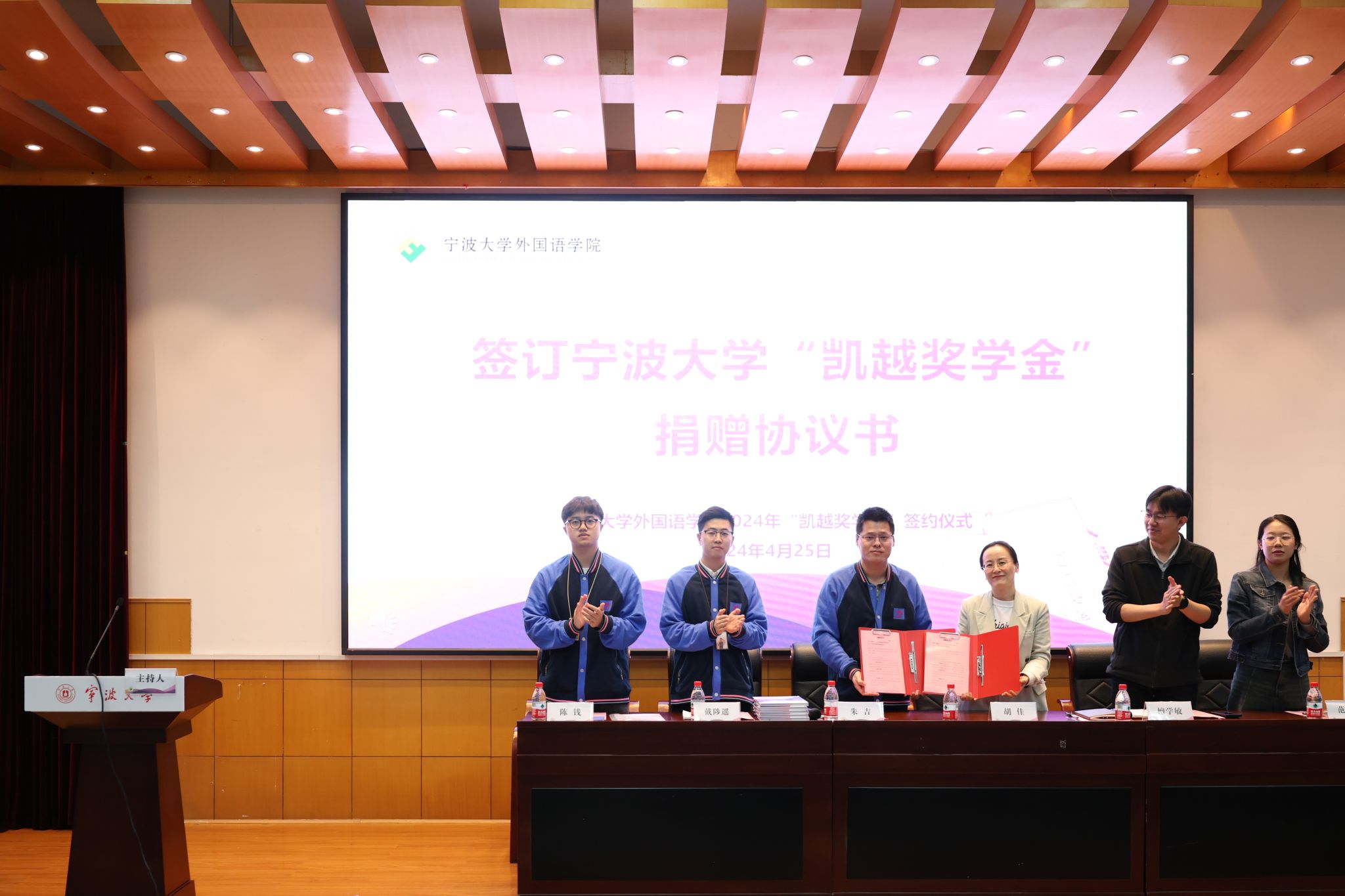 最后集团总裁助理朱吉介绍了凯越的发展历史及公司概况,表示“凯越奖学金”的设立旨在支持和鼓励在校学生勤奋学习,帮助更多学子实现梦想,助力外语人才的培养。他希望同学们刻苦锤炼本领,奋发展现作为,并欢迎更多的宁大学子加入凯越集团。