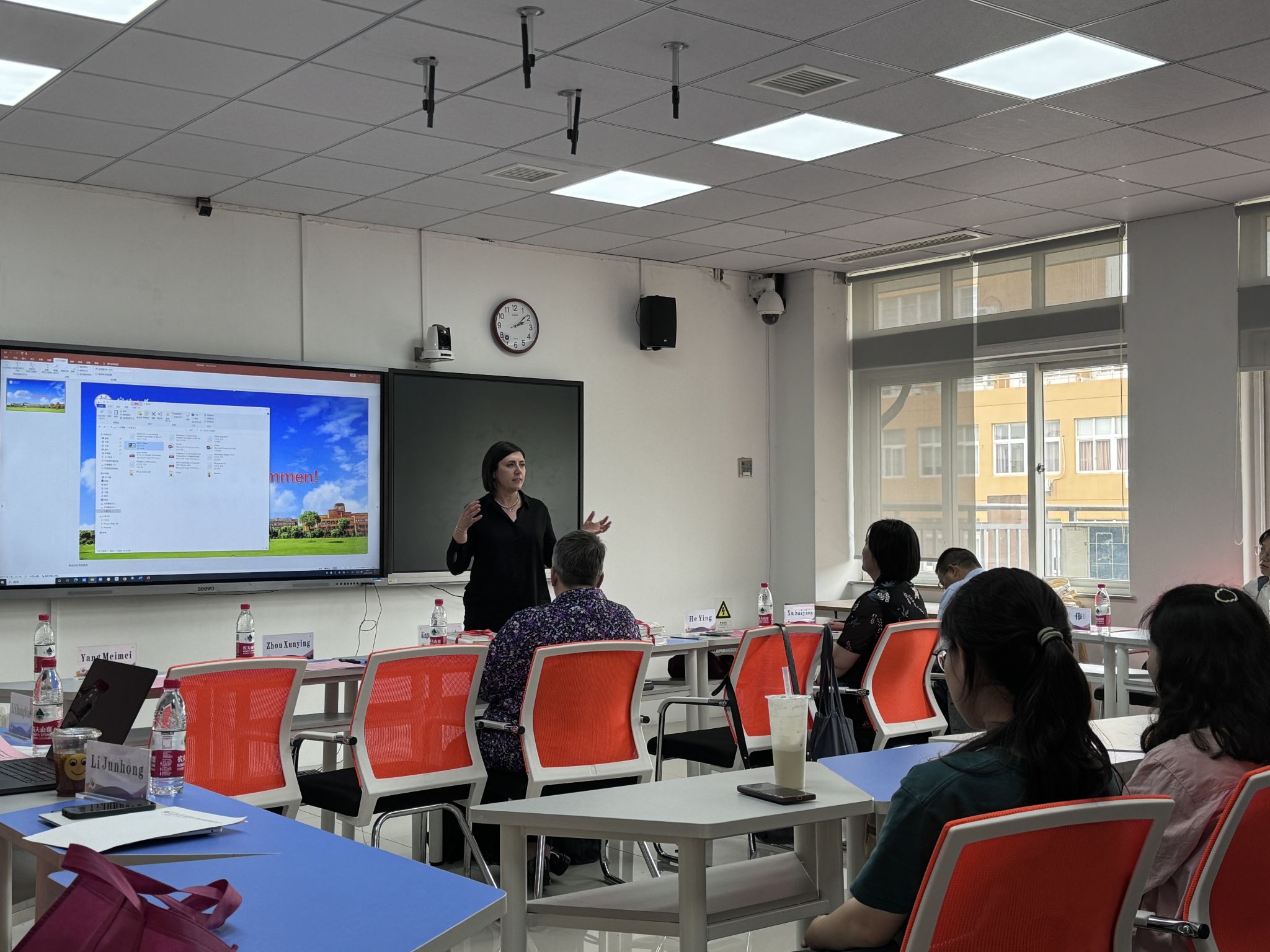 副院长贺莺、英语系主任李昌标、外事办主任徐赛颖、副主任别伟等热情接待。德语系、英语系教师及数十名本硕学生参加了活动。
