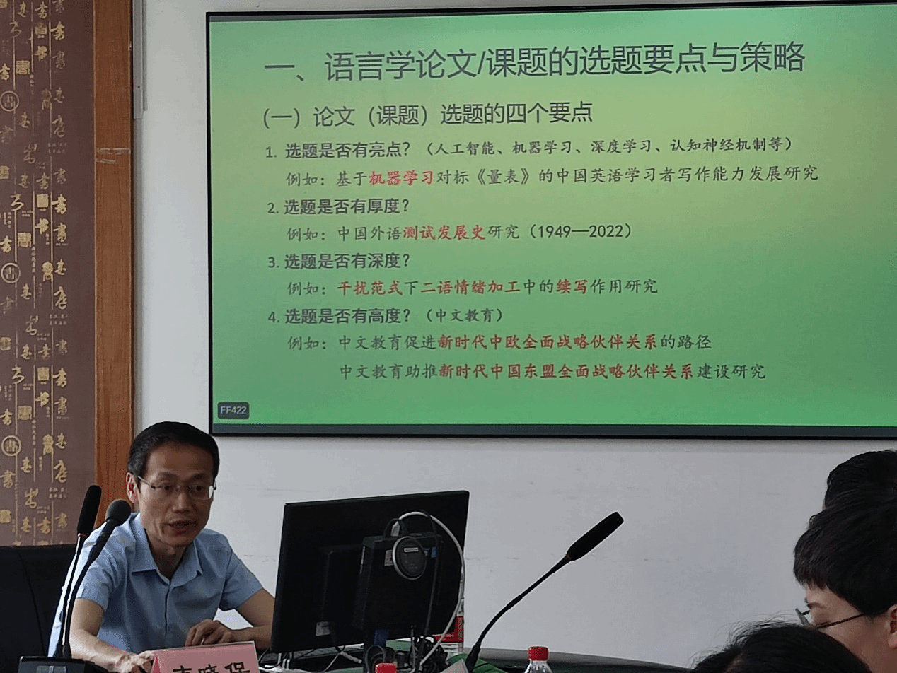 副院长、外国语言研究所所长、认知神经语言学实验室主任韦晓保教授在422会议室以“语言学论文(课题)之选题策略、设计与方法”为题,为爱下电子书