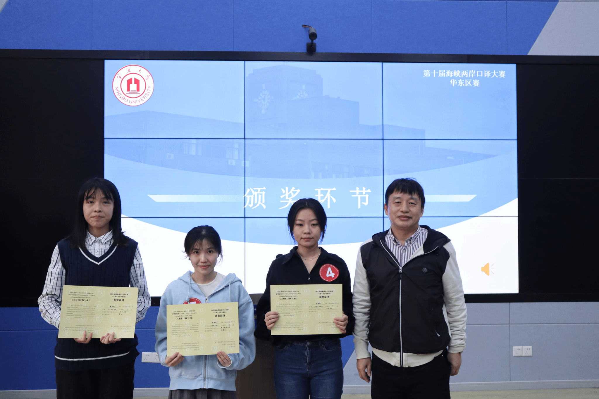 本届大赛吸引了来自浙江省、江苏省、江西省、山东省和上海市五省高校在读本科生、研究生参与,每所高校限推选1名选手参加。最终,共有来自14所高校的14名同学同台竞技。大赛共设主旨口译和会议口译两个环节,涉及语种为英语和汉语。比赛过程中,参赛同学展示出卓越的口译技能和深厚的专业知识。经过激烈的角逐,大赛产生多个奖项。浙江大学童茁野同学、华东师范大学杨隽敏同学获得一等奖,并晋级大陆地区决赛。