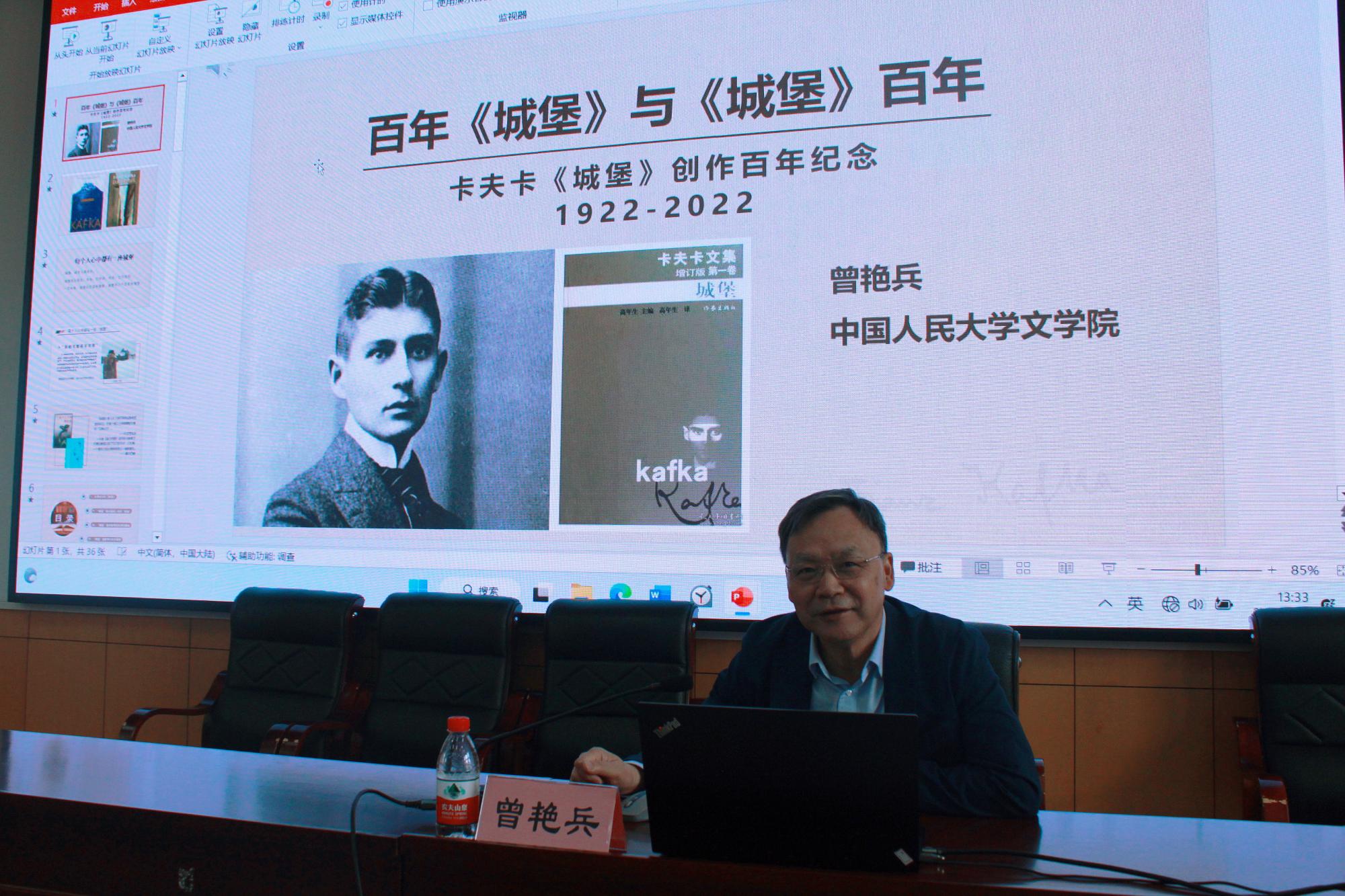 2023 4 3 日下午,应爱下电子书 邀请,中国人民大学文学院曾艳兵教授为爱下电子书 师生做题为 百年《城堡》与《城堡》百年 的讲座。本次讲座由陶久胜副院长主持。曾艳兵通过德语文学大师卡夫卡的代表作《城堡》( 1922-2022 )诞生一百年来的变迁,旁征博引,从 城堡 意象的讨论、神学与写作、官僚专制的隐喻以及精神分析的寓言四个维度,阐释了这部名作曲折的接受史和批评史。