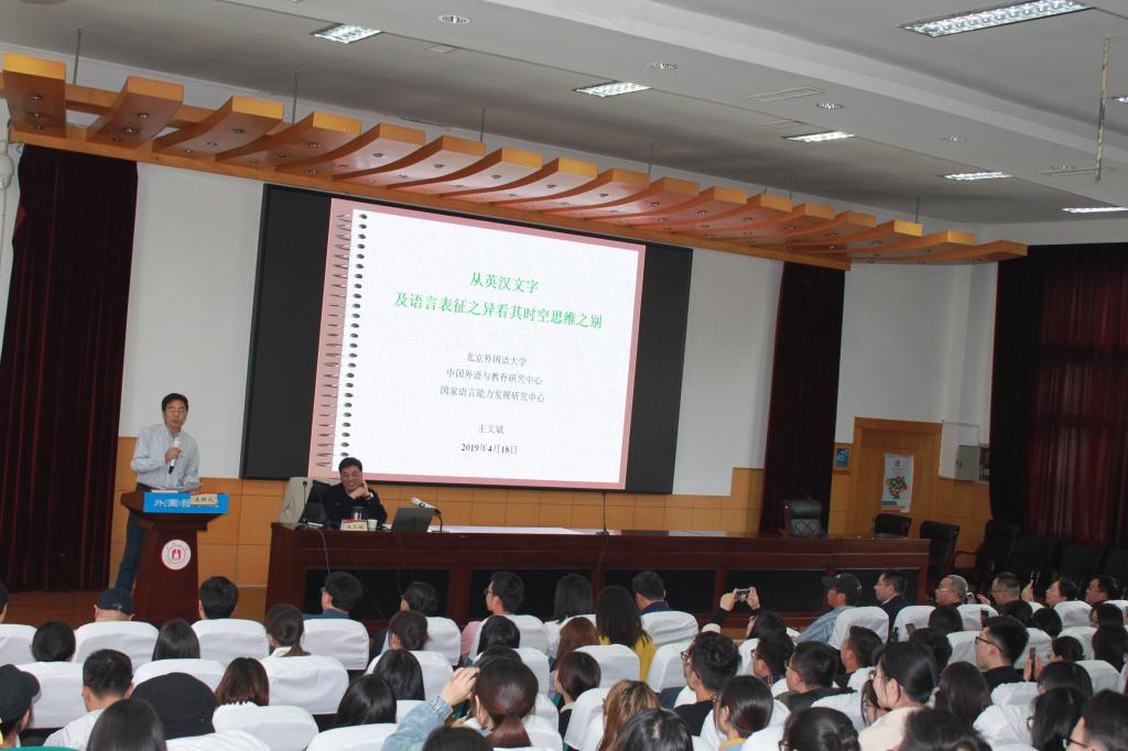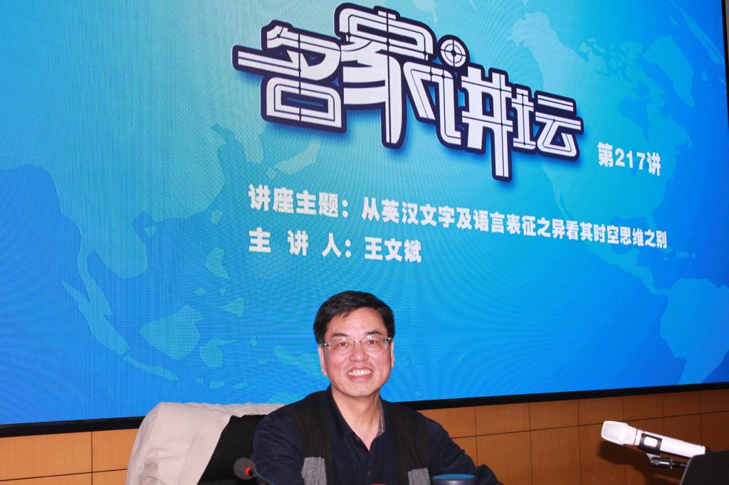 讲座伊始,王教授首先论述了语言对比研究中相似性和差异性的辩证统一观,点明了差异研究的重要性。并阐释了文字是思维符号的符号,文字比言语更重要这两个论断,并加以追问。接下来,从字构、词构、句构、篇构等多个语言层面,通过大量的语言事实,有力证明了英语是表音文字,汉语是表意文字,英语是线性结构,而汉语是空间结构的论断。最后,王教授指出“文字和语言是民族文化的重要组成部分,研究文字和语言,需要从其基因挖掘,才能参透其本质和规律”。