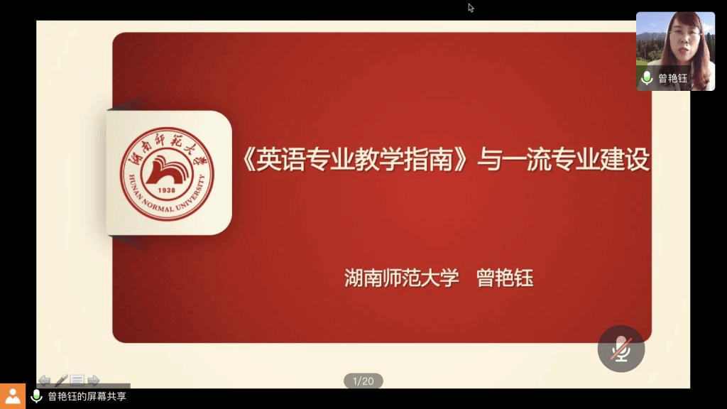 讲座伊始,曾艳钰教授主要介绍了《英语专业教学指南》与《国标》的关系以及《英语专业教学指南》的基本框架。曾教授从立德树人、中国特色英语教育体系的构建、英语专业人才培养的人文性、专业与学科的融通性等方面对《英语专业教学指南》进行了详细的解读。同时她指出《英语专业教学指南》具有一定的开放性,各高校应结合本校办学定位、制定出差异化、特色化的人才培养方案。