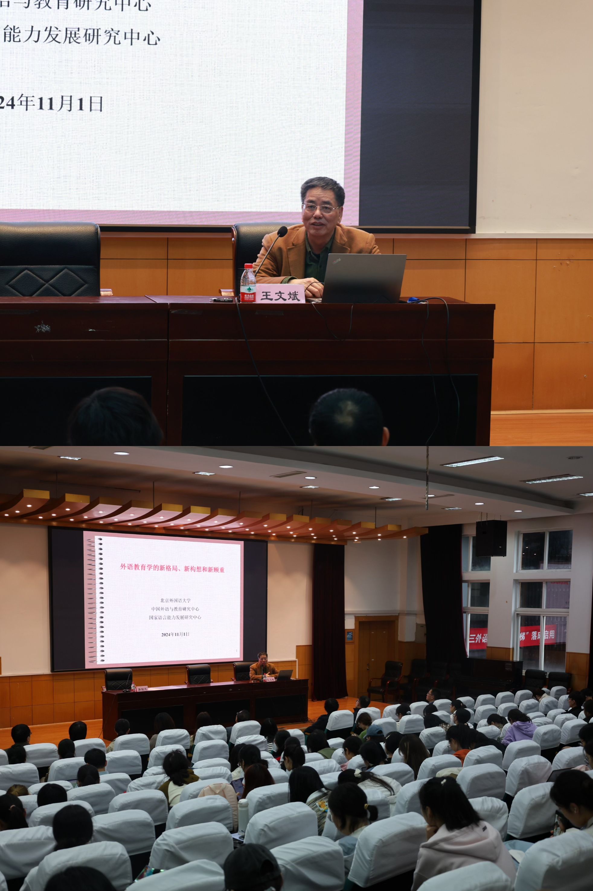 2024年11月1日下午,北京外国语大学教育部人文社科重点研究基地“中国外语与教育研究中心”主任,教育部高等学校英语专业教学指导分委员会副主任委员王文斌教授做客爱下电子书 人文社会科学名家讲坛第436讲,在李达三外语楼218学术报告厅为学院师生做专题讲座。此次讲座由学院特聘院长屠国元教授主持。王文斌教授以《外语教育学的新格局、新构想和新顾虑》为题,围绕外语教育当前存在的问题、外语教育的新格局以及外语教育的未来发展构想等方面进行了深入阐述和剖析。讲座伊始,王教授深入阐述了外语教育当前存在的问题和面临的挑战。他认为,随着人工智能在教育领域的广泛应用,为国家培养高质量的外语人才,是外语教育的新使命、新担当;外语教育的新格局应更加聚焦于母语语言修养的提升、更加注重培养隐形文化的理解能力以及弹性的思维能力,更加注重外语教育实践等。他旁征博引,通过详细解读国内知名大学校名的深刻内涵,强调了提升母语语言修养的必要性以及准确理解隐形文化的重要性。为此,王教授建议外语教师和学生应大量阅读文学作品。围绕弹性思维能力的培养,王教授通过“云山”和“家和万事兴”的英文翻译,深入阐释了外语教育过程中如何培养学生的灵活思维能力以及语言表达的创造力。围绕外语教育实践,王教授提倡外语教师应敢于突破固有的教学框架,采用创新的教学方法,并运用恰当的教学语言来实施个性化的教学方案,进而提高外语教育的教学效果和学习效能。关于外语教育未来发展的构想,王教授强调,外语教师应了解掌握人工智能技术,充分利用ChatGPT类大语言模型等数智化带来的便利。屠国元教授在总结讲话中表示,王文斌教授的讲座高屋建瓴,对广大外语教师和学生全面、深刻理解《外语教育学的新格局、新构想和新顾虑》具有全新的指导意义,对外语学科的建设、人才培养制度的创新等方面提供了实践路径。