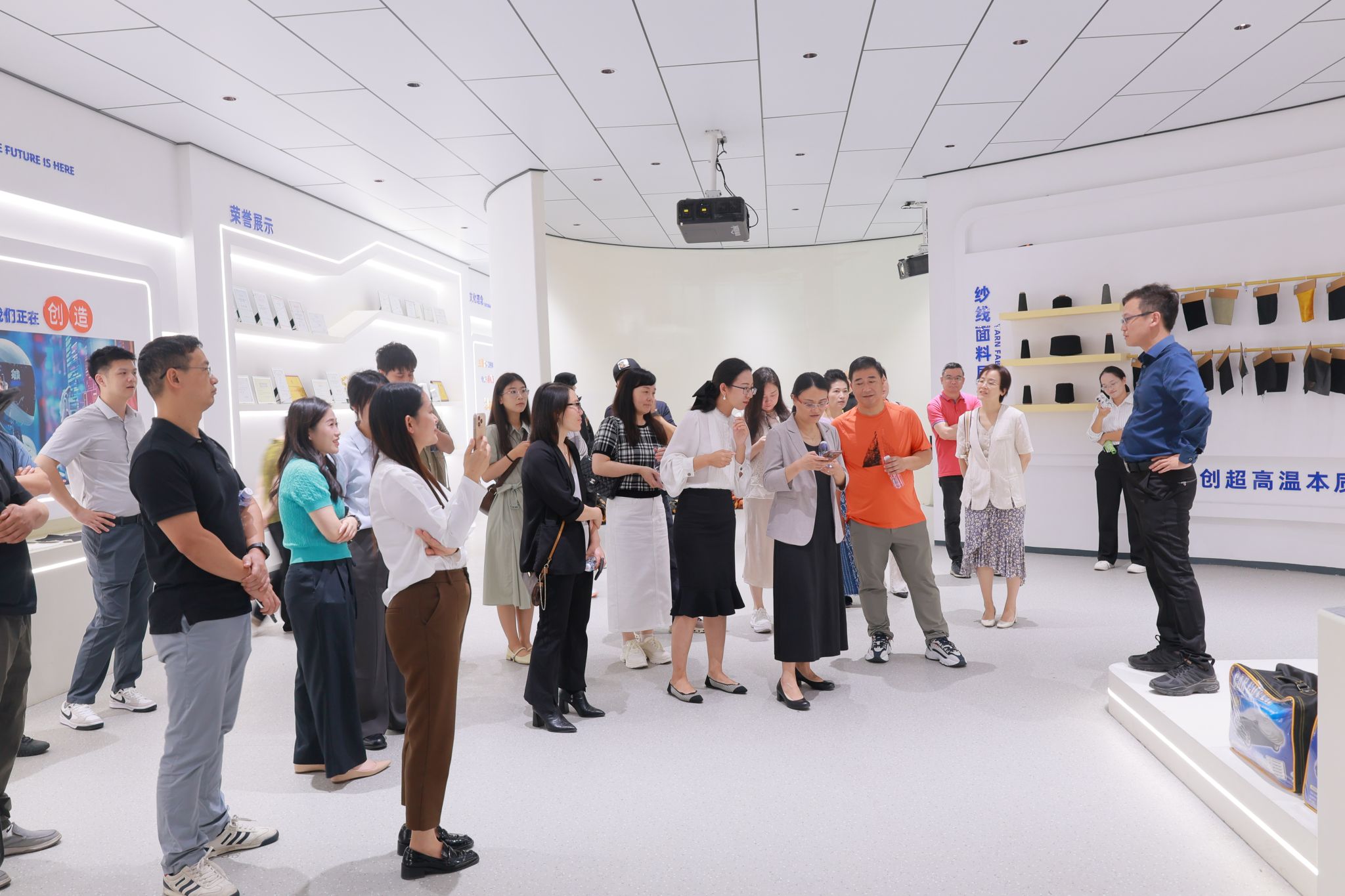 在邢斌校友的带领下,校友们一同参访了晶臻科技展厅,近距离了解企业的技术研发成果与产品体系。他亲自演示了核心产品的操作流程,专注而娴熟的操作让在场的校友让在场校友全程聚焦大家充分感受了产品卓越的性能精巧的创新设计展厅中陈列的各项专利证书行业重量级奖杯让大家不禁发出赞叹。