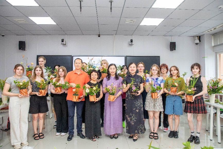 A series of hands-on activities were arranged to give the students a more comprehensive cultural experience. Associate Prof. Lin Yan from the Faculty of Foreign Languages hosted courses on “Chinese Tea Culture and the Art of Flower Arrangement”. Lin introduced the history and tea brewing technique and demonstrated the charm of Chinese flower arrangement. Students from both countries created beautiful flower bouquets in a relaxed and enjoyable vibe, experiencing the grace and refinement of traditional Chinese culture. |